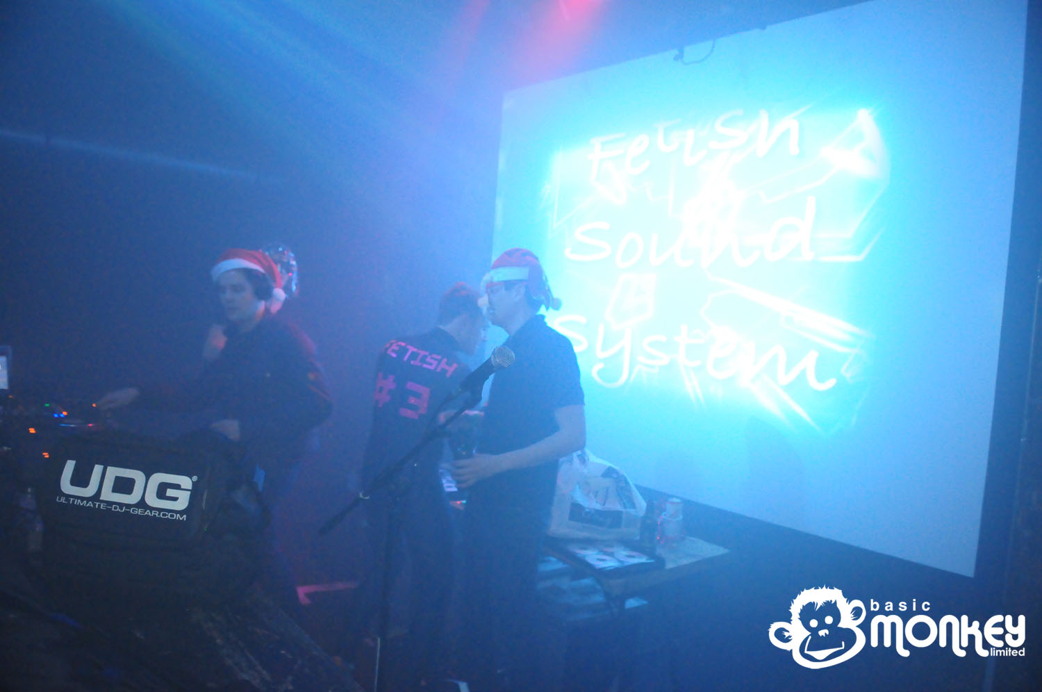 Long term friends of James’, The Fetish Sound System, were asked to provide music in the back room while Calvin Harris and Pete Tong were playing in the main room. Along with their DJing, they wanted to make the most of the opportunity with fancy dress, usual fetish antics and a visuals show from Basic Monkey.