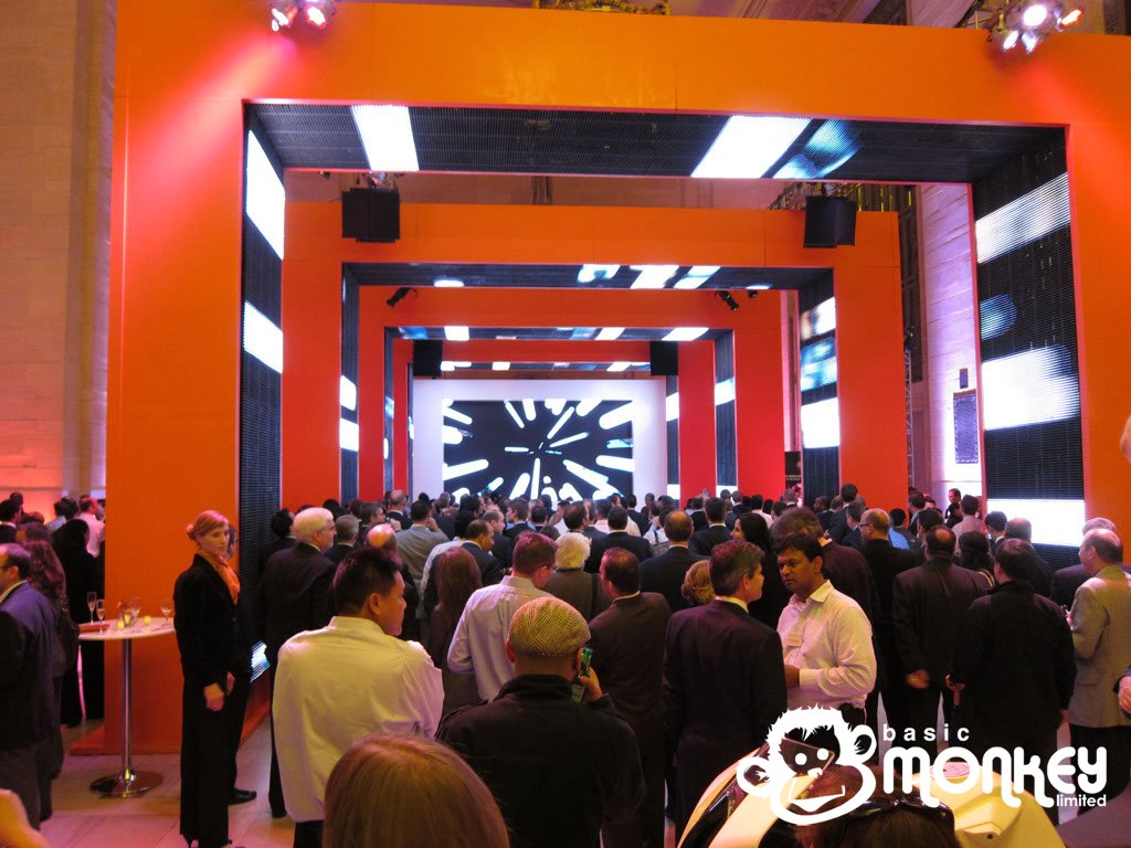 The whole system was fed using a Catalyst system sourced in the USA, programmed by James of Basic Monkey. Catalyst was used to play the arrival video loop, opening sequence, video excerpts and then some abstract graphics to amuse the guests after the show. For the main presentation, Keynote was used, this being fed into the Catalyst system.