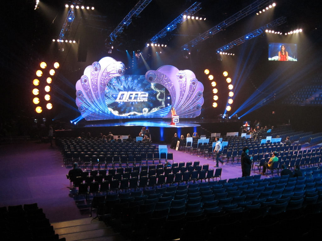 XL Video supplied projected side screens and a large rear projection screen integrated into the set and driven by 3x Barco FLM HD20s.