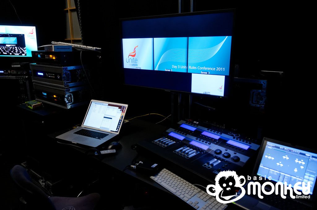 Following on from the success of Unilever’s conference at the ExCeL centre in London earlier this year, Steven Williams at CSP asked Basic Monkey to design and supply video for Unite, the Union’s rule conference at the ACC in Liverpool.